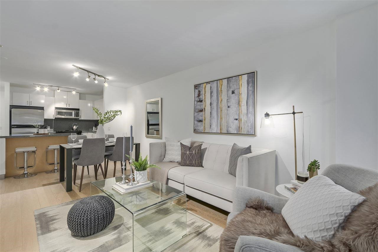 The coveted TIME building in sought after Lolo. Lovely 1 bedroom + den and a larger flex space for your lifestyle needs. Townhouse-style access to this one level condo, perfect for dog owners. Features include a gas stove for the urban chef, S/S appliances, sit-up kitchen island, beautiful hardwood floors, and a gas fireplace. Walk everywhere, just minutes to Lonsdale Quay and the sea bus, great restaurants, breweries, cafes, art galleries and more. One dog or 1 cat allowed. Rentals allowed, 1 year minimum. One parking + 1 storage locker.